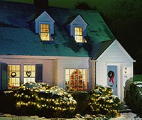 Ha a fák túl nagyok, a mindenre elszánt családfőtől az is bravúr, ha égősorokat hajít fel lasszózó mozdulatokkal a fára, ám ha a fák nem megközelíthetetlenül óriásiak, akkor kövessük az égősorral a fa alakját, így megvilágítva kirajzolódnak azok sziluettjei. Amerikai b-kategóriás filmekből ismert a komplett kivilágított házak képe, ettől azonban inkább tartózkodjunk, nehogy giccsparádévá silányuljon ünnepi igyekezetünk.