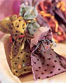 Ha apró, ám értékes ajándékot választottunk párunknak, ne vacakoljunk miniatűr csomag-csodák összeállításával, rejtsük inkább az apróságokat szatén-, tüll- vagy organzazacskókba. Ilyen szütyőket akár mi is készíthetünk, de ha biztosra akarunk menni, válogassunk a hobbiboltok kínálatából. A siker garantált lesz, ráadásul a csomagolást a későbbiekben is hasznosíthatjuk tárolhatunk benne, például,O pot-pourrit, ékszereket.