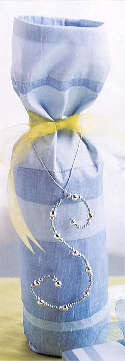 Italok csomagolásához finom, lágy esésű anyagokat használjunk, olyanokat, amelyek jól rásimulnak az üvegre. A selyem – vagy krepp-papír például jó választásnak bizonyul.
