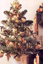 Díszítésnek használjunk bármit, ami természetes tobozokat, diót, szárított narancskarikát, papír vagy mézeskalácsdíszeket. Az ilyen típusú karácsonyfát a fából, textilből, kenderből készült díszek tehetik igazán különlegessé.