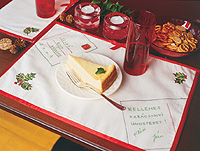 A karácsonyi üdvözlõlapot imitáló tányéralátét az egész család számára személyes ajándék. Amellett, hogy kedves üdvözlettel lephetjük meg szeretteinket, a címzéssel az ülésrend is meghatározható az ünnepi vacsoránál. Ez különösen hasznos, ha sok a vendég.