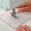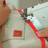Színt színnel egymásra fordítva varrjuk össze a mintázott és a sima téglalapot, de hagyjunk nyitva egy 10 cm-es szakaszt, amelyen keresztül kifordíthatjuk az alátétet, majd vasaljuk át az éleket az anyag színéről. Az alátét oldalainak hosszát összeadva megkapjuk a díszítőszalag hosszát, amihez adjunk hozzá 30 cm-t. Ezt a szalagot úgy varrjuk fel, hogy az alátét felső oldalán, középen kezdjük a varrást 15 cm ráhagyásával. Ha körbeértünk, a kilógó végekből kössünk masnit.