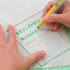 Textilfilccel címezzük meg a képeslapokat, és írjunk kedves üdvözletet a családtagjainknak. Ne felejtsük az aláírást!