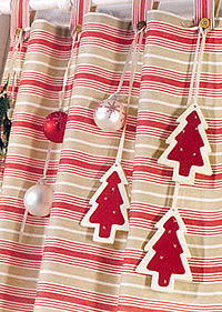 Télies hangulatot csalhatunk szobánkba, ha az ablaküvegre karácsonyi mintákat fújkálunk hóspray segítségével. Az ablakkeretet karácsonyfaizzókkal világítsuk ki, így esténként kellemes, meghitt hangulatban lesz részünk. A függönykarnisról se feledkezzünk meg, lógassunk rá fenyőágakat, karácsonyfa- vagy különböző papírból készült díszeket.