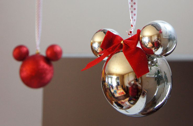 A játékosság a fáról se hiányozhat. Ilyen Miki egeres díszt egy nagyobb és két kisebb gömbből pofonegyszerűen készíthetünk.