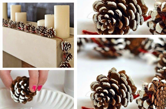A téli erdőben a gyerekekkel gyűjtött tobozok egy kis fehér festékkel megbolondítva a karácsonyi otthon különleges díszeivé válhatnak.