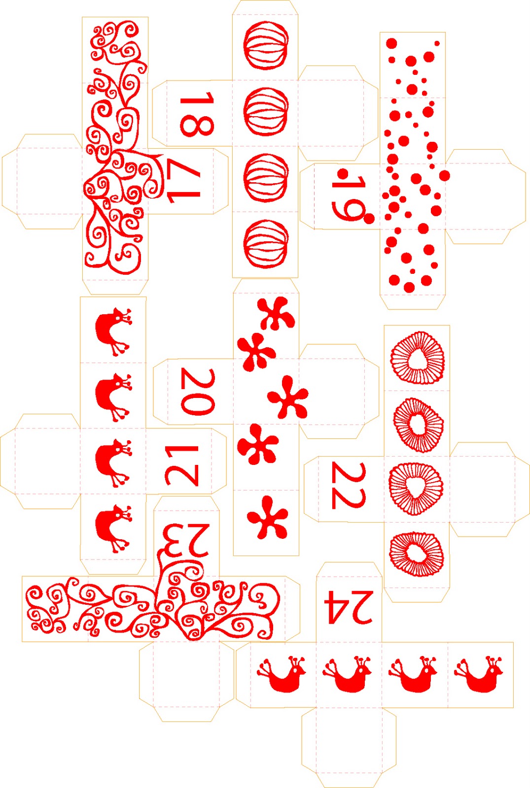 Ehhez a naptárhoz ragasztóra, ragasztócsíkra, papírzacskókra és csipeszekre lesz szükséged, meg persze 24 apró meglepetésre.