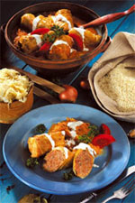 A káposzta tetejére rakjuk a besózott halszeleteket, és lefedve, előmelegített sütőben a halat készre pároljuk. A szeleteket levéve a káposztáról, a káposztához adjuk a tejfölt, átforraljuk és forrón tálaljuk oly módon, hogy a tál aljára rakjuk a káposztát, rá a halszeleteket, majd tejföllel és paprikás zsírral díszítjük.
