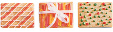Kis nyílású habzsákkal különböző színű és mintájú díszítést rajzolunk a négyszögletes süteményekre. A „csomagot” átköthetjük szalaggal.