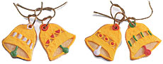 Fémtűvel kis lyukat szúrunk a harang tetején sütés előtt. Miután a sütemény kihűlt, sárga mázzal bevonjuk. Amikor ez megszáradt, kis nyílású habzsákkal színes mintát rajzolunk rá, majd ismét száradni hagyjuk. A lyukon szalagot fűzünk át.