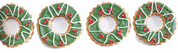 A koszorút zöld mázzal bevonjuk, majd száradni hagyjuk. Kis nyílású habzsákkal fehér cikcakkos mintát és piros pöttyöket rajzolunk rá.