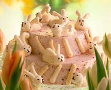 Abszolút kedvencünk ez a torta, ami már ránézésre ellenállhatatlan. Ráadásul ezeket a nyuszikat a vegetáriánusok és az érzõ lelkûek is örömmel megehetik! A gyerekeknek nem árt pótpéldányokkal készülni!