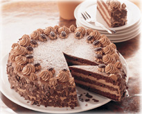 Az alsó tortalapot 2-3 evőkanál kávélikőrrel meglocsoljuk, majd rákenjük a krém harmadát. A második lapot ráfektetjük, ugyancsak meglocsoljuk, és rákenjük a maradék krém felét. Ráhelyezzük a harmadik lapot, és ezt is meglocsoljuk a kávélikőrrel. A torta oldalát vékonyan megkenjük a krémmel, a maradékot egy nyomózsákba töltjük, és csillagfejjel feldíszítjük a tortát. A torta oldalát megszórjuk csokoládéreszelékkel, a tetejét a porcukorral díszítjük.