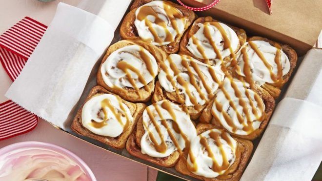 - A krémhez keverjük ki a krémsajtot a cukorral és a vaníliával. A melaszt a vízzel és egy kis cukorral keverjük el. Kenjük meg a tekercsek tetejét először a krémmel, majd csurgassuk rá a melaszt is.