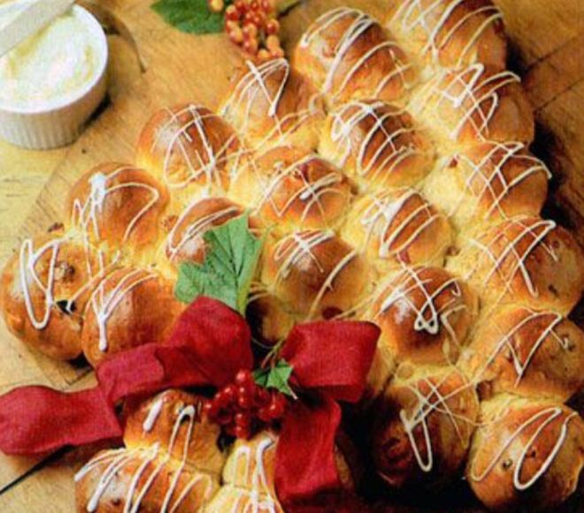 - Ahhoz, hogy karácsonyfát készítsünk, helyezzünk 1 tészta labdát egy enyhén zsírozott nagy tepsibe. Készítsünk egy második sort úgy, hogy 2 tészta golyót közvetlenül az első golyó alá helyezünk, és negyed golyónyi távolságra rakjuk őket egymástól. Az utolsó négy golyót hagyjuk meg a fa törzséhez, és fedjük le, hagyjuk pihenni körülbelül 40 percig.