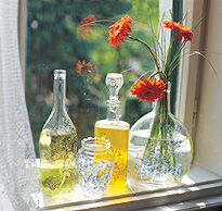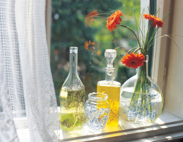 Finom málnaszörpöt vagy jóféle borocskát mi is tarthatunk efféle butéliákban, de ha csak századelős szépségük miatt ragaszkodunk hozzájuk, dekorálhatjuk velük az ablakpárkányt is. A nosztalgikus hangulatú szalvétákkal díszített üvegekből válhat virágváza is, amelyet még különlegesebbé tehetünk azzal, ha a vizet megfestjük, hogy a szín átderengjen a leheletvékony szalvétán.