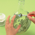 Az üveg felületére fektetett szalvétát puha ecsettel ragasztózzuk be. Érdemes a kép közepétől indulni, és kifelé simítani a szalvétát, mert így nem marad alatta buborék, és a szélei is tökéletesen tapadnak majd az üvegen. A gazdagon díszített szalvéták mintáját sokféleképpen kivághatjuk: hozzunk létre merészen áttört felületeket, így a részletek közül előtűnő üveg izgalmas látványt nyújt.