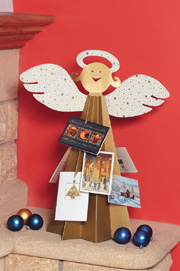 A barátoktól, rokonoktól érkezõ üdvözlõlapok dekoratív tárolására adunk egy nagyszerû ötletet. A mosolygós angyalra tûzött jókívánságok így szem elõtt lehetnek az ünnepek alatt.