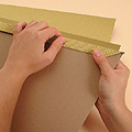 Az angyalka köpenyszerű testét két részből fogjuk összeilleszteni, mert csak így tudjuk kiszabni a két darab aranyszínű hullámkartonból.