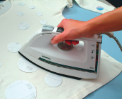 Tervezzük meg a hópihék, a betűk, a szavak elrendezését, és helyezzük őket színükkel lefelé a pólóra. Állítsuk pamutfokozatra a vasaló hőmérsékletét, majd vasaljuk a motívumokat az anyagba (1-3 perc). Miután kihűlt, húzzuk le a felvasalóréteget a mintáról. Akkor végeztünk jó munkát, ha a motívum szélei nem pöndörödnek fel, és az anyag textúrája kissé átüt a nyomaton.