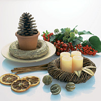 A karácsonyfa hagyományos díszei közül az alma, a dió, az aszalt szilva és minden kör vagy gömb alakú tárgy a termékenység ill. a gazdagság jelképe. A fát díszítő papír- vagy textilláncok a hagyomány szerint a bibliai kígyót jelenítik meg. Sokan helyeznek csillagot a fenyő tetejére, mely a Jézus születését jelző üstököst idézi meg közénk.