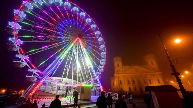 A Debrecen Eye a teljes adventi időszakban várja a vendégeket, a 33 méter átmérőjű óriáskerékről egyszerre akár 156-an is megcsodálhatják a város látképét.