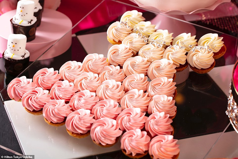 Hilton Tokyo Odaiba szálloda gyönyörű karácsonyi desszertbüfével várja vendégeit egy igazi nagy csavarral méghozzá azzal, hogy idén a klasszikus helyett valami egészen mást választottak témául: a rózsaszínt. Ennek megfelelően a süteményeknél és az ünnepi díszekben is ez a szín dominál.