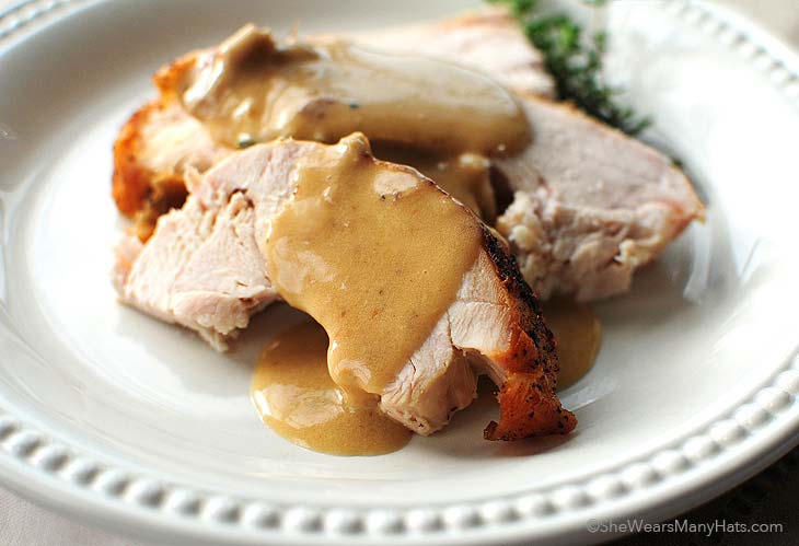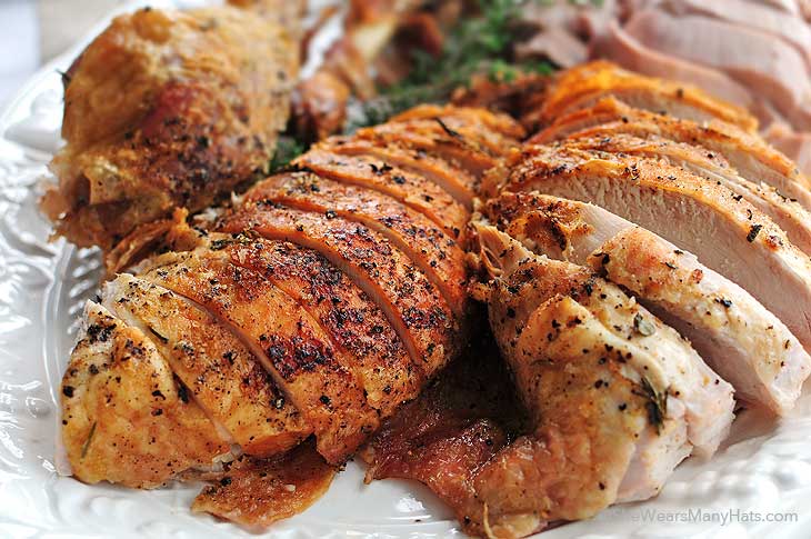 6) Kivesszük a pulykát a sütőből, letakarjuk fóliával és 20-30 percig pihentetjük a méretétől függően, majd felszeleteljük.