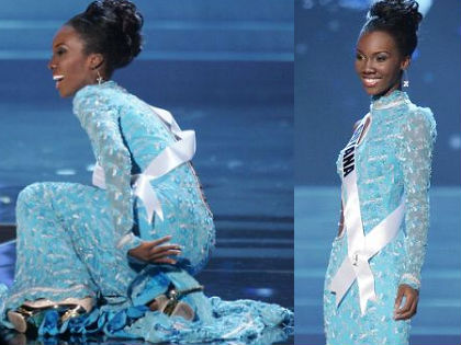 Hatalmasat esett a kifutón a szépségkirálynő – fotó