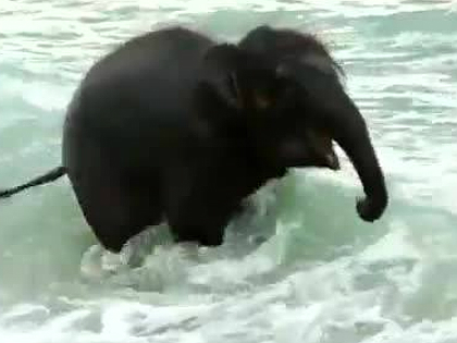 Először látja a tengert az elefántbébi – videó