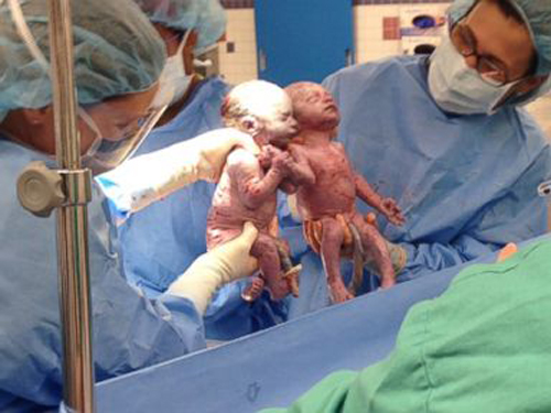 Megható fotó: kézenfogva jöttek világra az ikrek