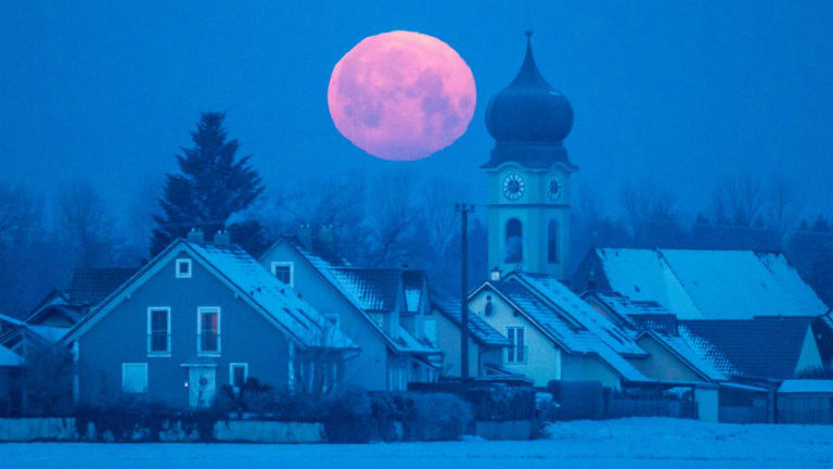 A hét képekben: óriáshold Németország felett, menekülés Ukrajnában