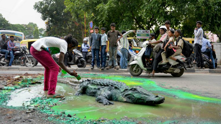 Krokodil az úttesten, füstszörny az égen – a hét képekben