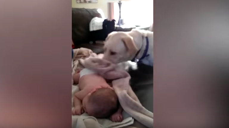Ettől tuti, hogy elolvadsz: kutyus takargatja a babát