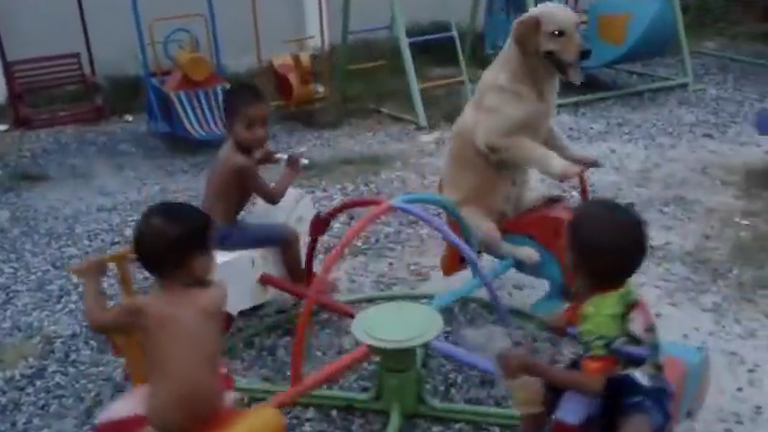 Imádni fogod: körhintázik a kutya a gyerekkel