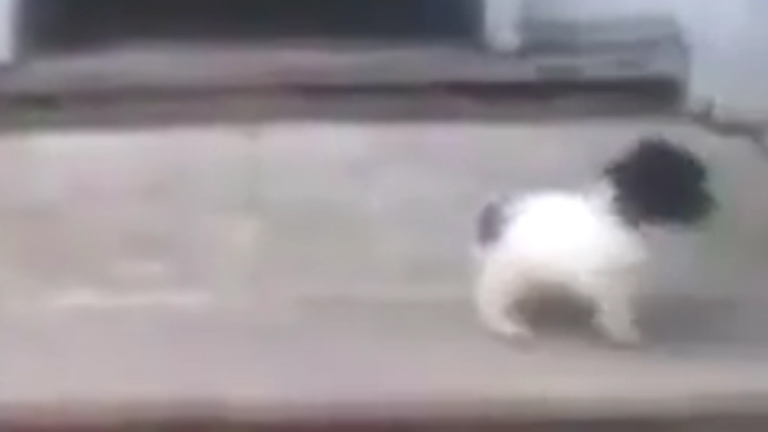 Mit csinál a kiskutya, ha nem mer lemenni a lépcsőn?