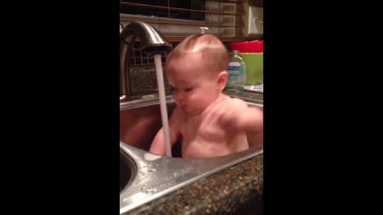 Ezt a kisbabát teljesen lenyűgözi a folyó víz csodája – cuki videó
