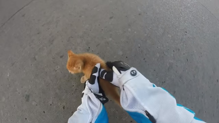 Elképesztő videó: kiscicát mentett a vagány motoros