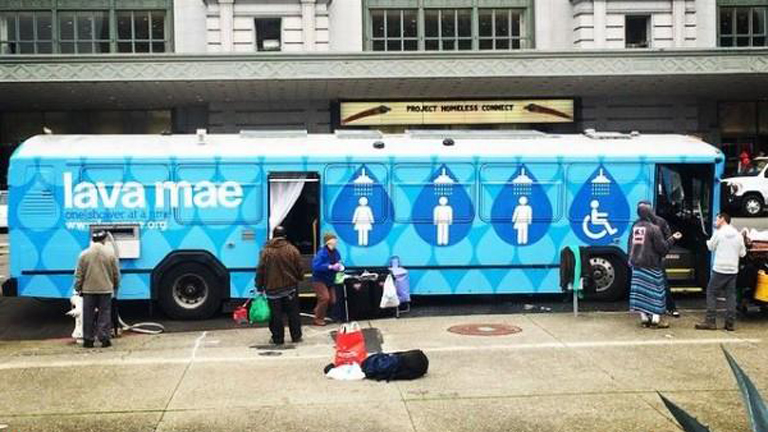 Leselejtezett buszokat alakítottak zuhanyzóvá a hajléktalanok számára – fotó