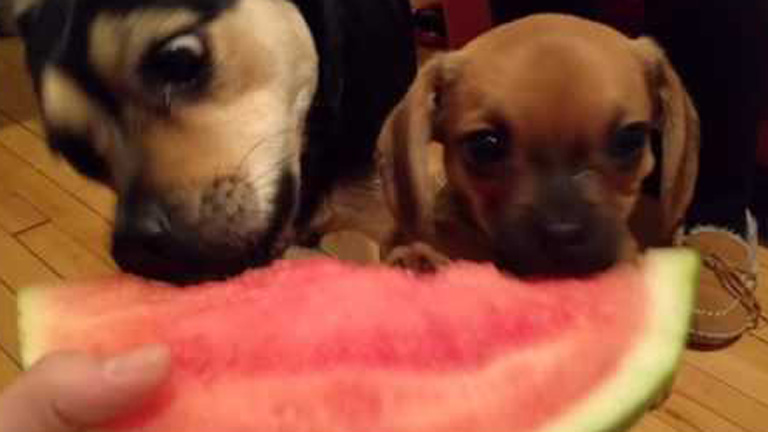 Cuki videó: ez a kiskutya először próbálja ki a görögdinnyét – és imádja
