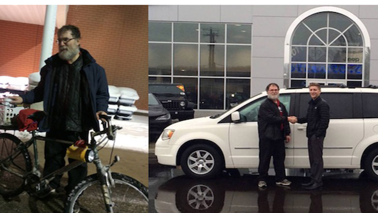 Megható: vadidegenek vettek kocsit a hóban bicikliző férfinak