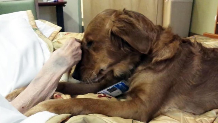 Nem hajlandó otthagyni az idős beteget a terápiás kutya