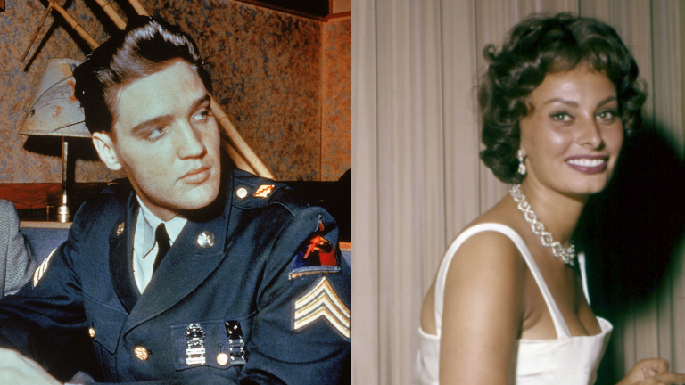 Régi fotón Sophia Lorent csókolja Elvis Presley