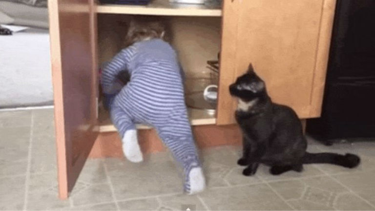 Vicces videó: bezárta a macska a gyereket a szekrénybe