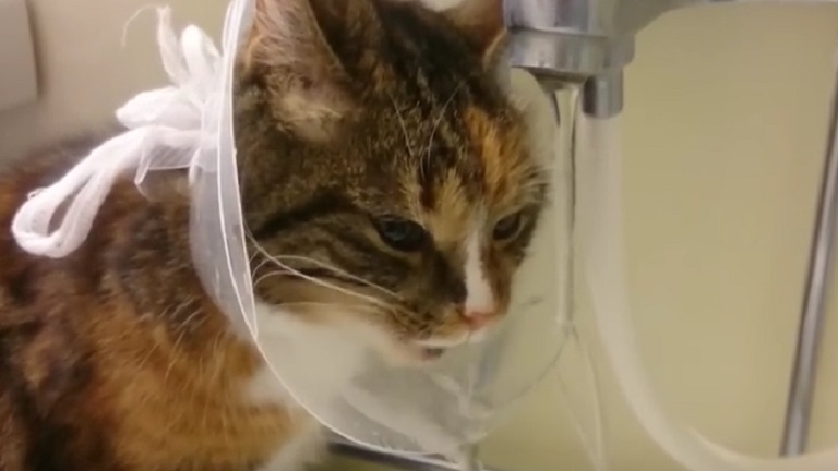 Ez a macska rájött, hogy húzzon hasznot a védőgallérból – cuki videó