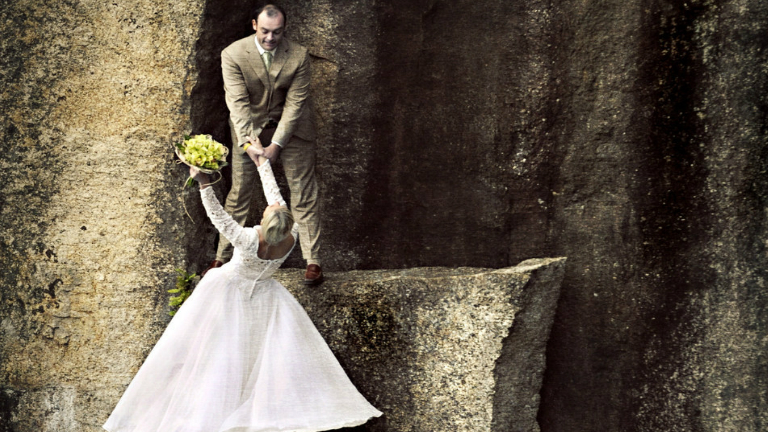 106 méteren, egy kopár sziklafalon készültek ezek az esküvői fotók