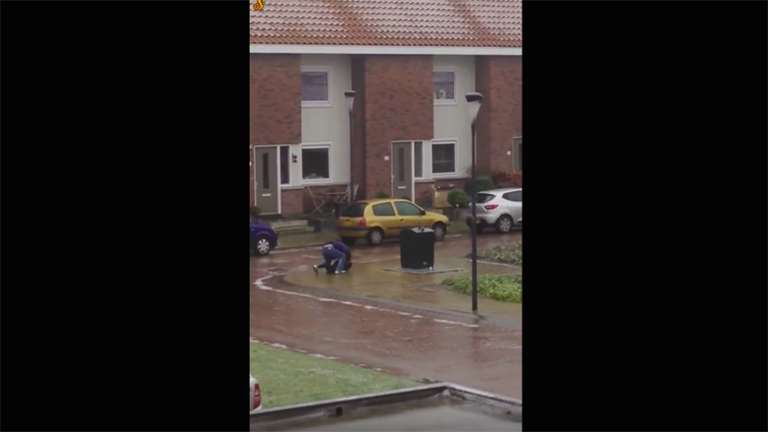 Neked biztosan jobb a hétfőd, mint a férfinak, aki jeges úton vitte ki a szemetet – vicces videó