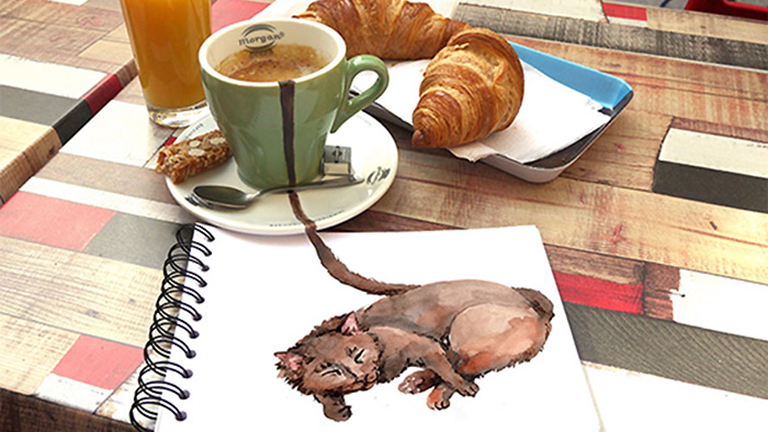 Macskákat varázsol a kiömlött kávéból az orosz illusztrátor
