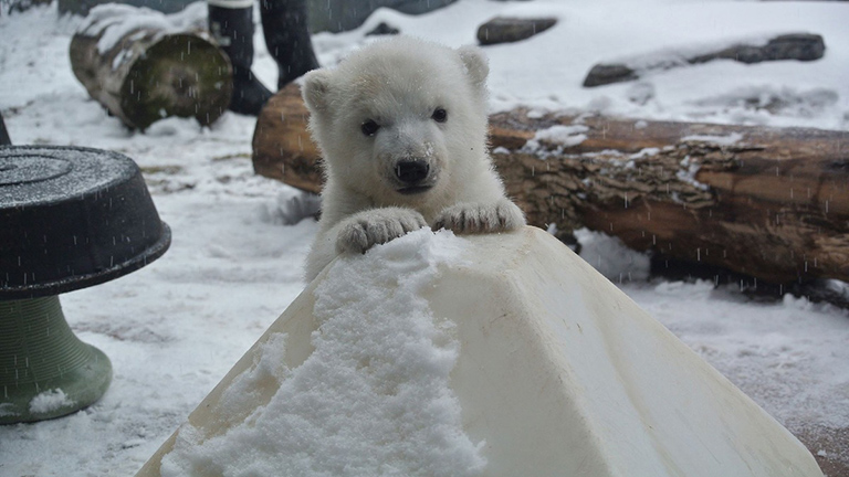 Ez a jegesmaci először mókázik a hóban – cuki videó