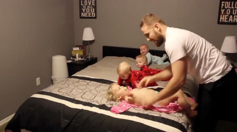 Az apa, aki lefekteti a hármas ikreket és a totyogót pár perc alatt